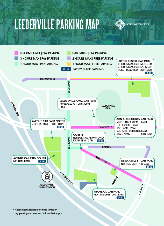 - Leederville Oval Carpark: Free parking – only available after 5.30pm