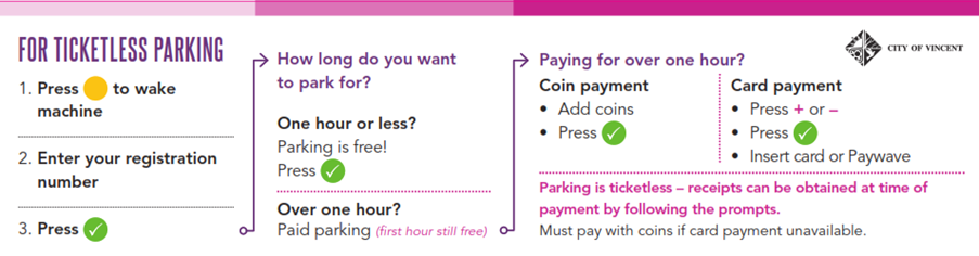 City of Vincent ratepayers can apply for 'first hour free' parking at The Avenue, Frame Court and Newcastle Street carparks in Leederville.