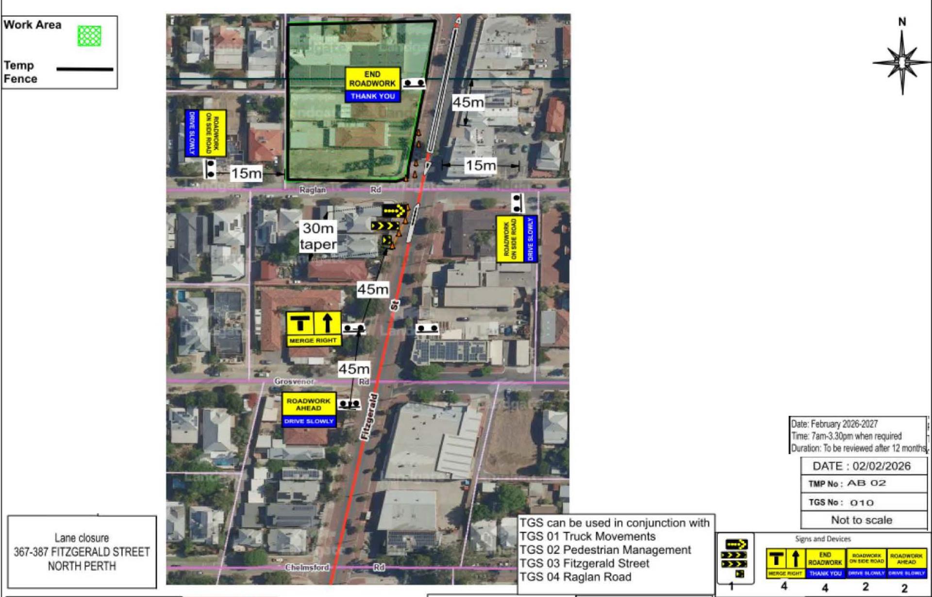 See below approved Traffic Guidance Schemes (TGS) according to Traffic Management Plan AB 02 STAGE 1 - 10-10 and AB 02 STAGE 2 TGS 04R1 & TGS 10